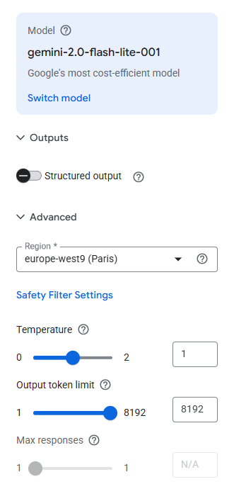 - Ensure the model name model is selected (I switcheted to gemini-2.0-flash-lite-001 to save some dollars π).