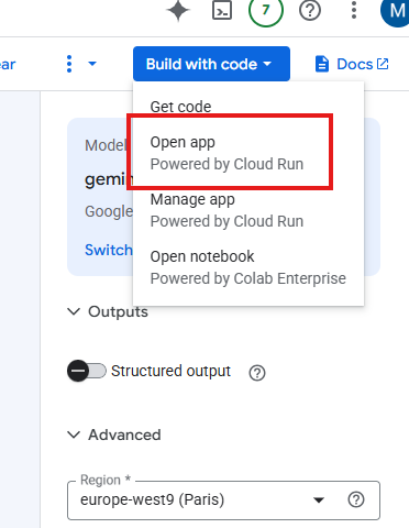 - Under Advanced options, confirm your Region is selected (e.g., `europe-west9 (Paris)).